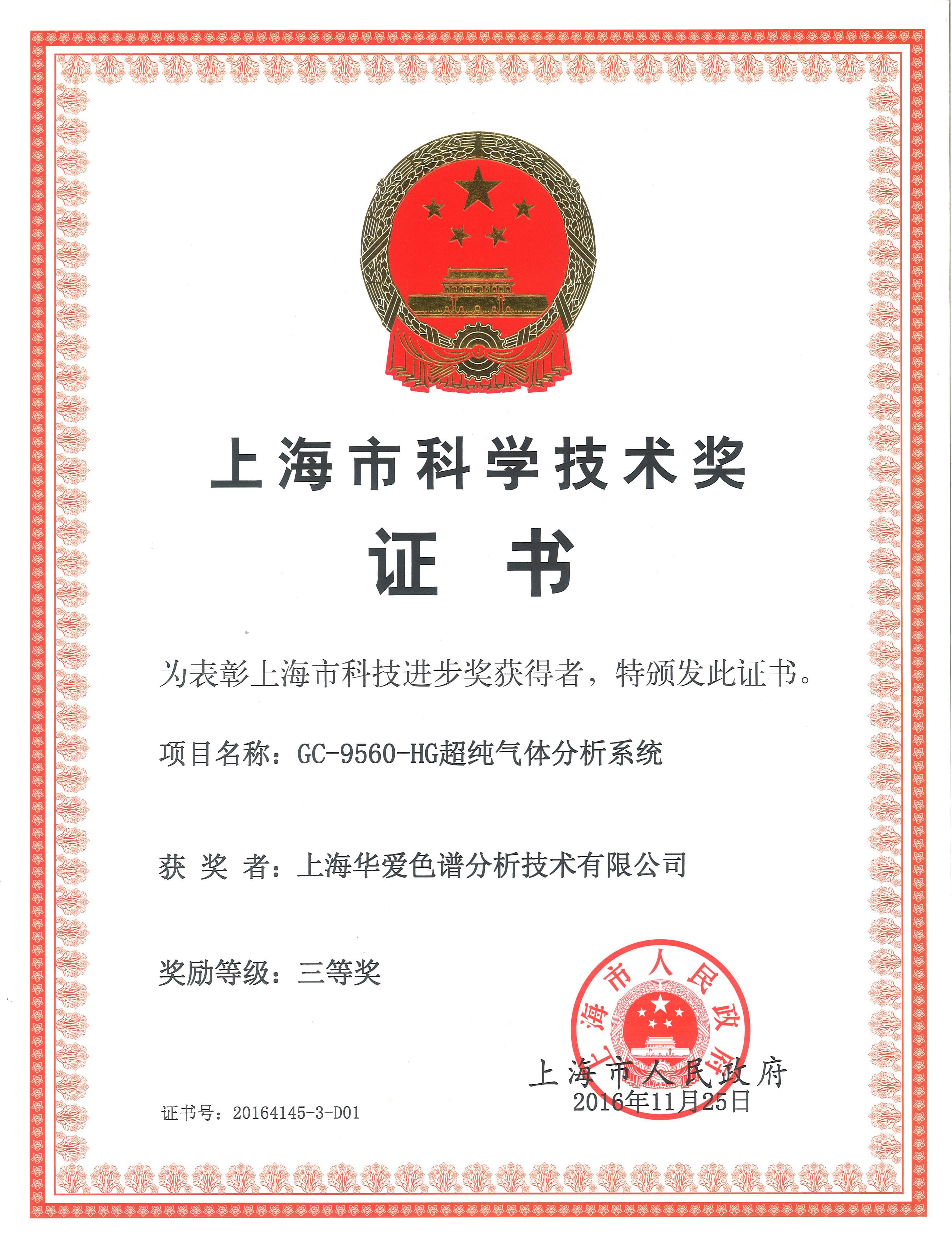 2016, Third prize of Shanghai Science and Technology Award.