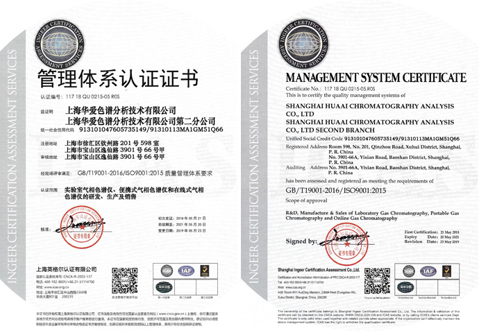 Since its establishment in 2004, Huaai Chromatography has participated in the formulation and revision of one International Standard ISO19230-2020 "Gas Analysis-Sampling guidelines" and nearly one hundred "National Standards”. Huaai Chromatography has dozens of patented technologies in the field of gas chromatography production and application, and has undertaken a number of science and technology projects on both national and Shanghai municipality levels. These projects include National Innovation Fund, Key New Product Program, Torch Program, and Achievement Transformation among others. These achievements have established the position of Huaai chromatography in the chromatography analysis industry. The company’s production workshop is located near Huangpu River, with a complete management system and production environment that passed the ISO9001 International Quality management system certification in 2008. It has three main series of gas chromatograph; GC-9560 laboratory gas chromatographs series, HA-9660 online gas chromatographs series, and GC-9760 portable gas chromatograph series. It has more than 20 kinds of products which can be equipped with various detectors such as FID, TCD, FPD, PDD, PED, ZrO2.